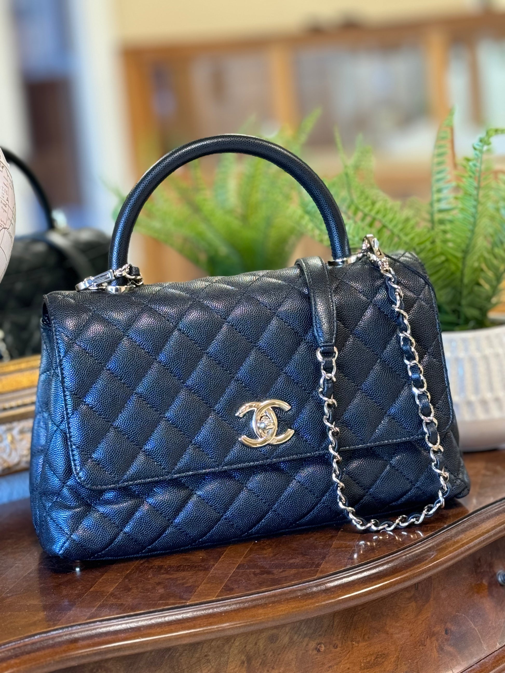 CHANEL Caviar Quilted Medium Coco Handle Flap Black